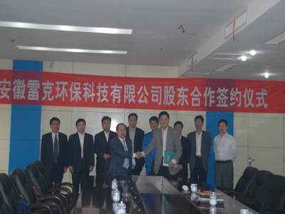 近日,公司董事長兼總經理王兆連一行7人來到安徽省合肥市中科院合肥物質科學院科學島,與合肥物質科學院余增亮老師,安慶新文采置業有限公司吳敬東總經理,就合資成立安徽雷克環保科技有限公司事宜進行磋商。公司成立后主營:湖泊污染治理,城市景觀水污染治理,工業和生活用水污染治理,氮磷藻磁聚移出浮床的開發研制與銷售。